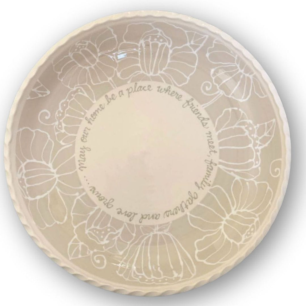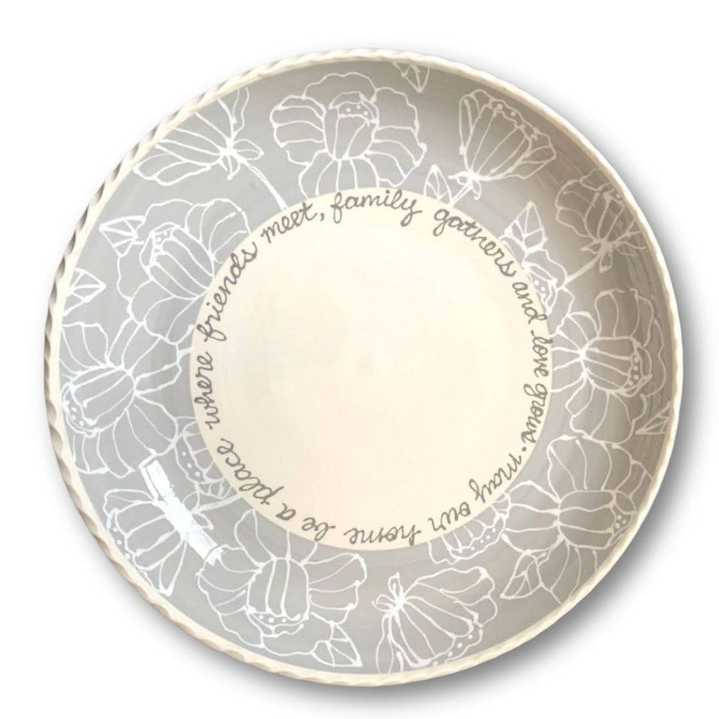 Our new Blessing Serve bowl is an addition to our Blessing Bowl collection. This bowl is perfect for serving, celebrating and decorating any space in your home. The bottom interior of the bowl can be personalized. Give the perfect gift, personalized to remember an important event or milestone. Approximate diameter of 12." and height of 1.75".