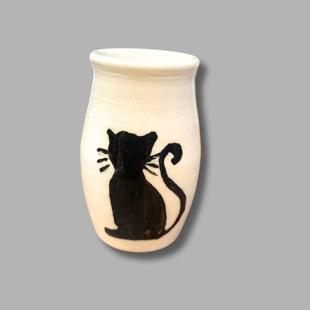 Our Black Cat small tall vases are approximately 3" tall by 1.5". Each vase is handcrafted and hand painted by one of our artists. This listing is for one small tall vase. Orders take approximately 3-4 weeks to create.